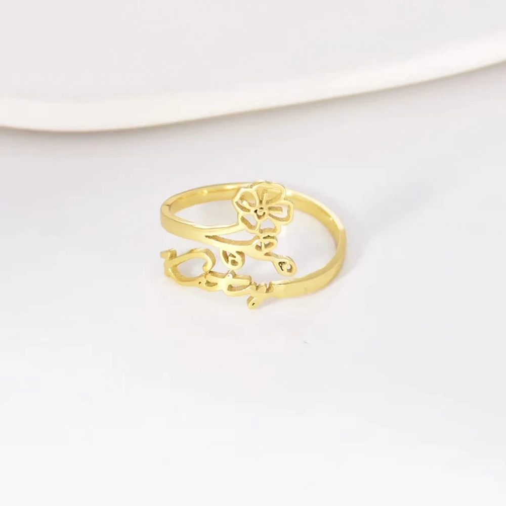 Tags: Birth Flower Name Ring, Birth Flower Ring, Custom Name Ring, Custom Ring, Name Ring, Ring